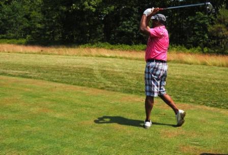 The golfers in action.
