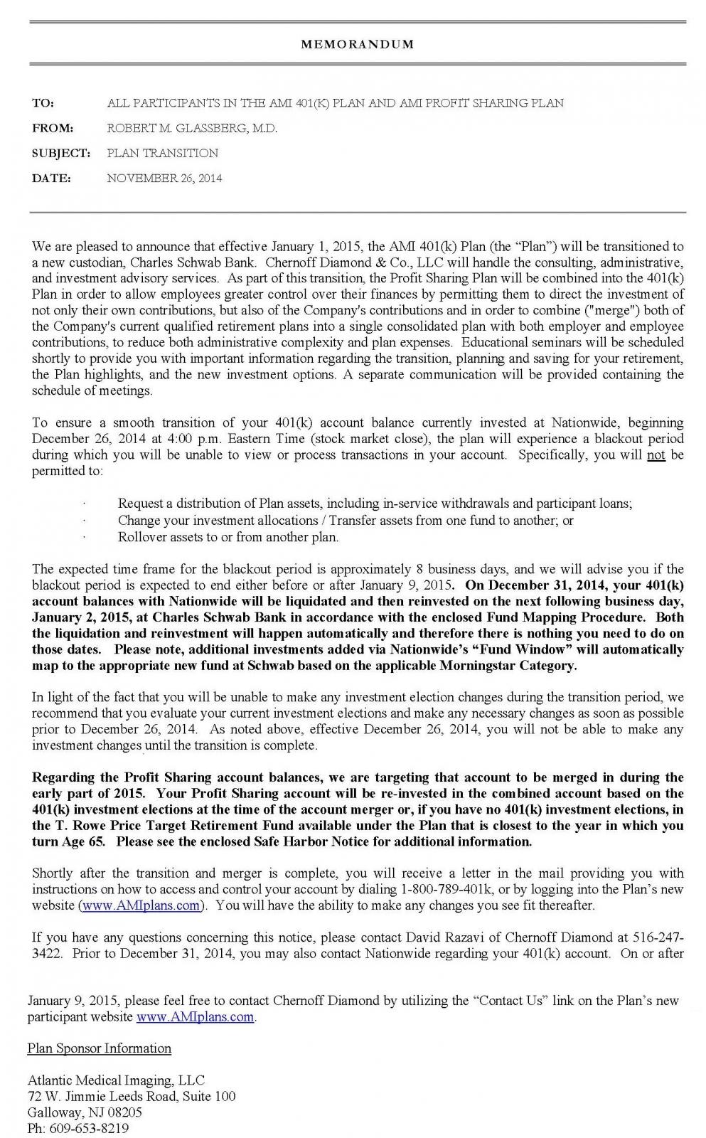 If you are enrolled in the 401K Plan and Profit Sharing Plan, please review the following information.
